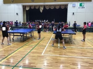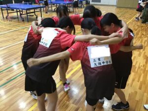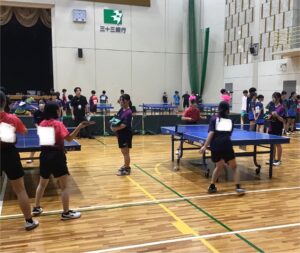 - 9月20日、松阪地区新人体育大会卓球の部の団体戦が三十三銀行アリーナにて行われました。新チームになって初めての大会でしたが、全員が声をかけ合いながら、一生懸命プレーすることができました。