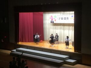 ホーム > 日常の様子 【文化祭②】3年生有志発表 3年生の有志による発表が行われました。司会や照明、音響などすべて3年生のみなさんの協力で素敵なパフォーマンスを披露してくれました。全学年が声援を送り、大盛り上がりの会場となりました。 タグ:文化祭 シェアする Twitter でシェア はてなブックマークに保存 LINE でシェア Facebook でシェア Pocket に保存 Feedly で購読 関連投稿 日常の様子 修学旅行の新聞づくり・・・2年生 日常の様子 第42回文化祭・・・1年生合唱 日常の様子 パソコン部の様子 日常の様子 【文化祭③】国際部・ELH 発表 日常の様子 第42回文化祭・・・2年生合唱 1年生 / 日常の様子 【1年生】文化祭にむけて(国語科) 前の投稿 【文化祭①】開会行事•吹奏楽部 次の投稿 【文化祭③】国際部・ELH 発表