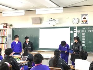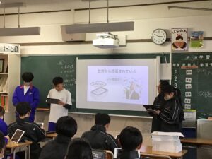 ホーム > 日常の様子 / 2年生 【2年生】わくわくスクール報告会 先月、開催された「わくわくスクール」の報告会を2月12日6限目におこないました。各事業所に分かれ、学んだことをクラスの子たちに伝えるため準備してきました。その甲斐あって、どの発表も素晴らしいものになりました。 シェアする Twitter でシェア はてなブックマークに保存 LINE でシェア Facebook でシェア Pocket に保存 Feedly で購読 関連投稿 日常の様子 スポーツフェスティバル予行練習 日常の様子 3年生遠足 日常の様子 / 3年生 スポーツフェスティバル学年練習1回目 日常の様子 県大会 一回戦 野球部 日常の様子 わくわくワーク最終日(米常) 日常の様子 修学旅行【2年生】 前の投稿 3月の主な校時と予定について