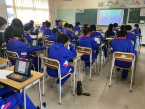 本日5限目に、iPad貸与式を行いました。タッチペンや充電ケーブルなどは全て「自己管理」です。なくさない、壊さないように大切に扱いましょう。