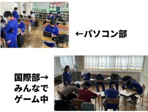 4/17(金)2回目のクラブ体験がありました。今回は室内の部活動を見てきました。美術部ではそれぞれ作品の制作に取り組み、集中している姿を見ることができました。パソコン部の体験ではキーボードを使ってのタイピング練習をし、国際部では先生と一緒に楽しそうにゲームをしていました。吹奏楽部は数多くの楽器がありますが、ローテーションしながら体験することができました。